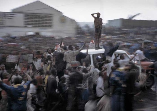 他的作品通常表现空间中一个简单的运动。他与著名的舞蹈指导William Forsythe(强烈推荐此人,youtube上可以搜到他的视频,堪称绝伦)合作的作品Airdrawing / whenever on on on nohow on是他的代表作。在这组作品中,他用三部摄影机从不同角度记录一组重复的动作,然后根据动作在平面上描绘出图像,于是将形体和时间的延续在一个平面上记录下来。还有两部微型摄影机固定在表演者的双手上来记录环境相对于人的运动,这两部摄影机拍摄到的影像是晃动和模糊不清的,与三部固定的摄影机形成对比。Peter 想通过把一个分解过的动作放在空间里,不断的重复重复再重复,来说明whenever on on on nohow on这句话——无处不在的循环轨道。他说这段文字表达了一个运动的顺序,总是以死亡结尾。在他的作品中也可以看到往复的运动停止的一刻。